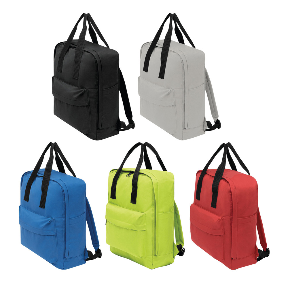 Rucksack HIP: 1 Reißverschluss-Vortasche, 1 Reißverschluss-Hauptfach, verstellbare gepolsterte Schultergurte, 2 Tragegriffe