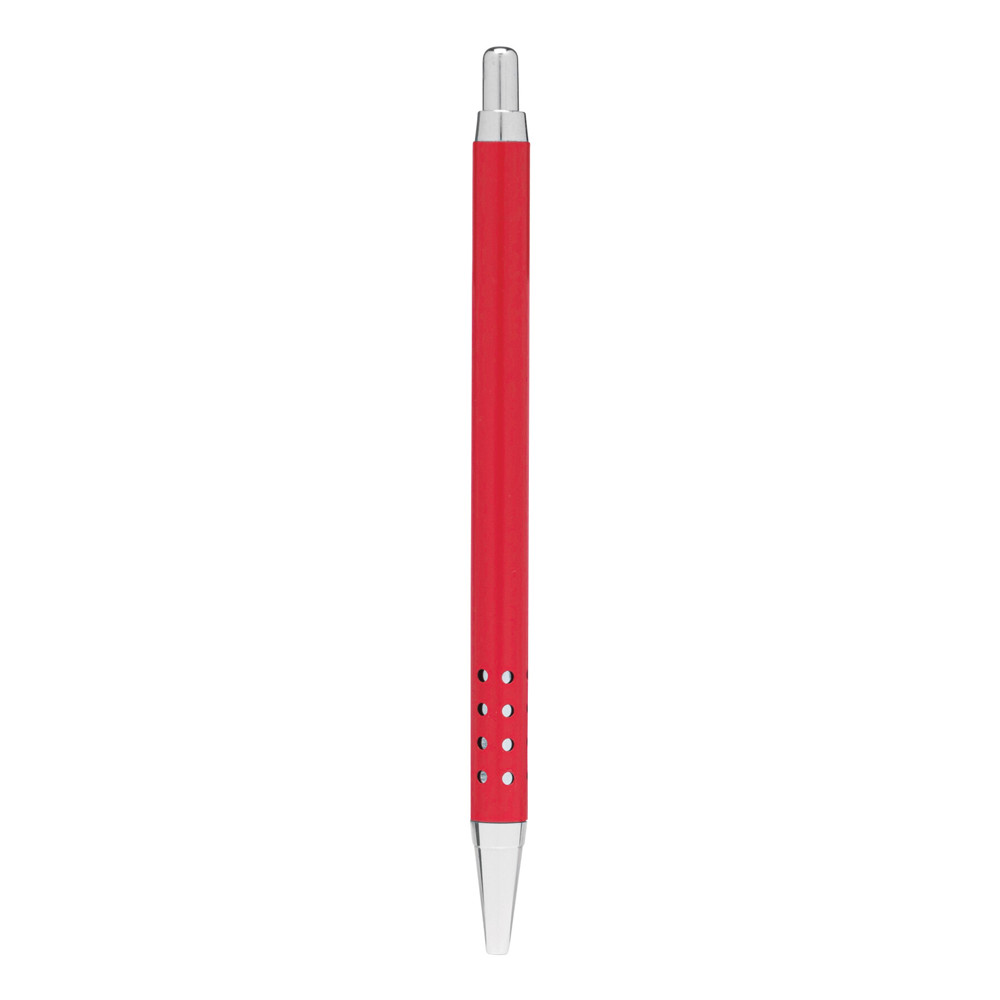 Messing-Kugelschreiber BUDAPEST: mit Metall-Schaft, Griffzone mit Loch-Design, Druckmechanismus, Großraummine, blauschreibend