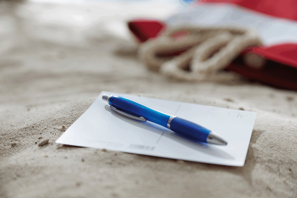 Kugelschreiber SWAY: mit Kunststoff-Schaft in taillierter Form, Druckmechanismus, Großraummine, blauschreibend