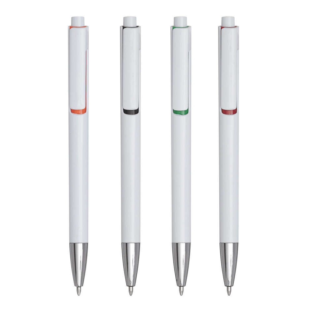 Kugelschreiber MIAMI: mit Druckmechanismus, farbiger Clip-Hintergrund, Großraummine mit deutscher Tinte, Schreiblänge ca. 1000 m, schwarzschreibend