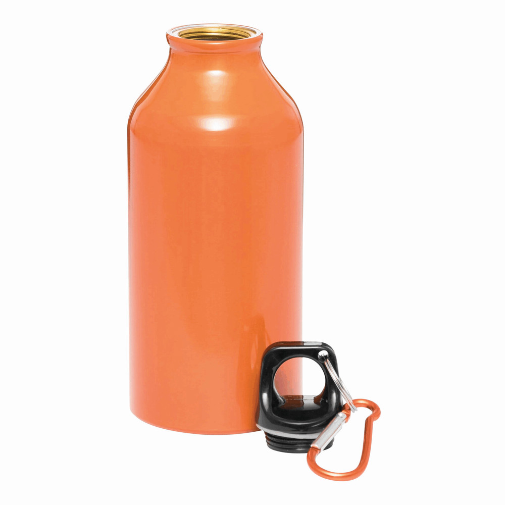 Aluminium-Trinkflasche TRANSIT: Kunststoffverschluss mit farblich abgestimmtem Karabinerhaken (der Karabiner ist NICHT als Sicherung beim Klettern geeignet), Füllmenge ca. 400 ml