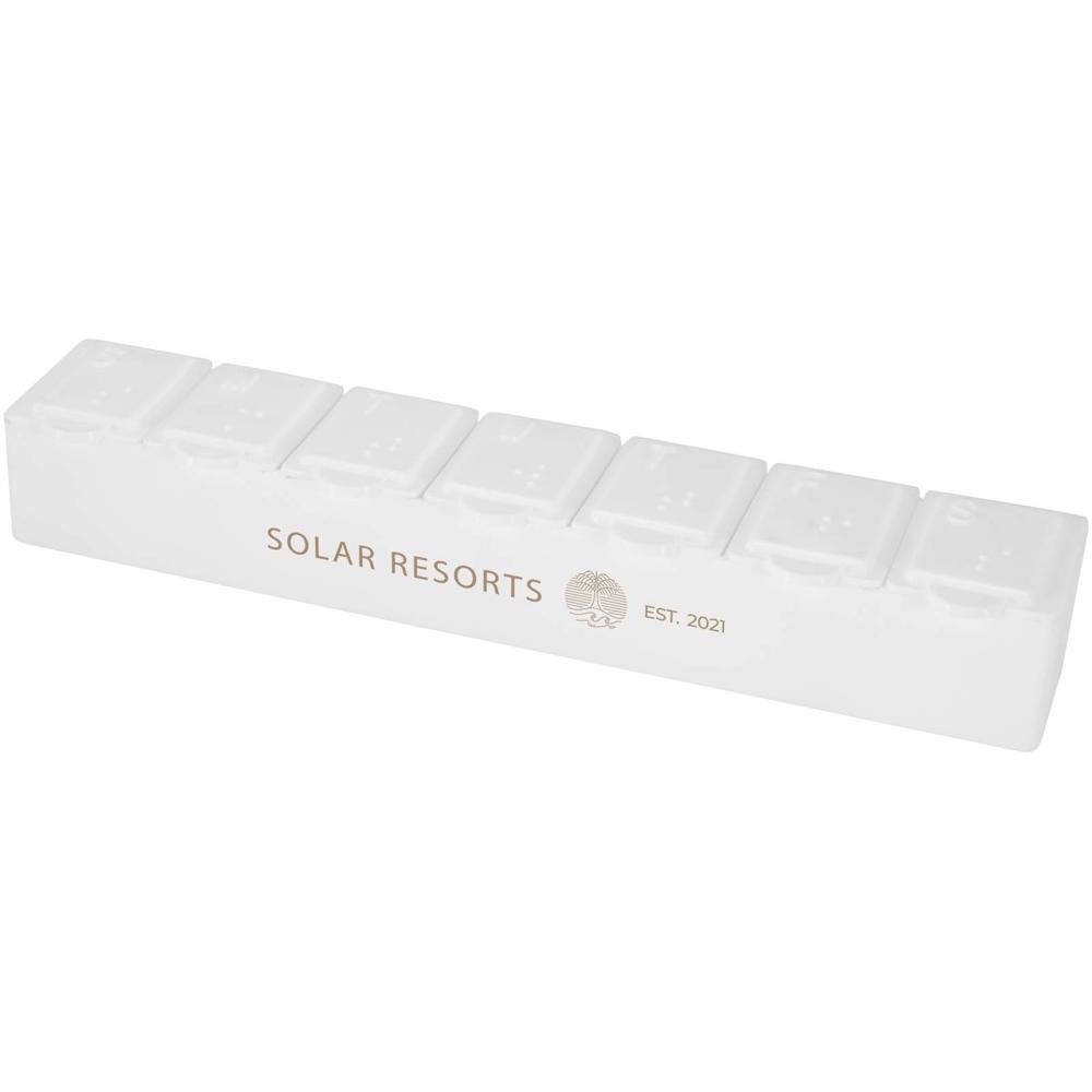Behalten Sie mit dieser Multivitamin-Pillendose den Überblick über Ihre tägliche Nahrungsergänzung. Sie verfügt über sieben klar beschriftete Fächer (Montag bis Sonntag), damit Sie keine Dosis mehr vergessen. Kompakt und robust, ideal für unterwegs und den Alltag, erleichtert sie die Aufbewahrung und Mitnahme Ihrer Vitamine.