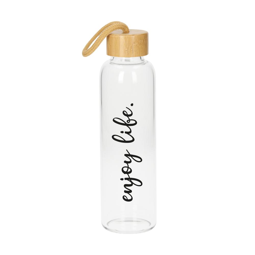 Flasche aus Borosilikat-Glas mit Schraubverschluss aus Bambus-Holz inkl. Silikondichtung. Die griffige, graue Synthesekautschukhülle mit Halteschlaufe hält die Temperatur der Getränke länger konstant. Zudem schützt sie die Hände bei heißen Getränken vor dem warmen Glas. Füllmenge: 0,55 Liter.
