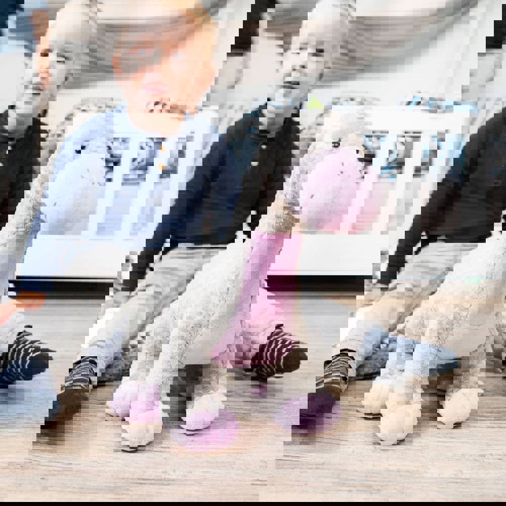 Die Dinos sind los! Die ersten Vertreter der Urzeit sind in der MiniFeet®-Welt angekommen. Große und kleine Dino-Fans lieben das kuschelig-weiche Fell von Dino Tino. Der kleine Riese ist genau der richtige Begleiter für Zeitreisen und andere Abenteuer. Dieses niedliche Kerlchen sorgt als süßer Geschenkartikel oder Werbegeschenk für jede Menge Freude.