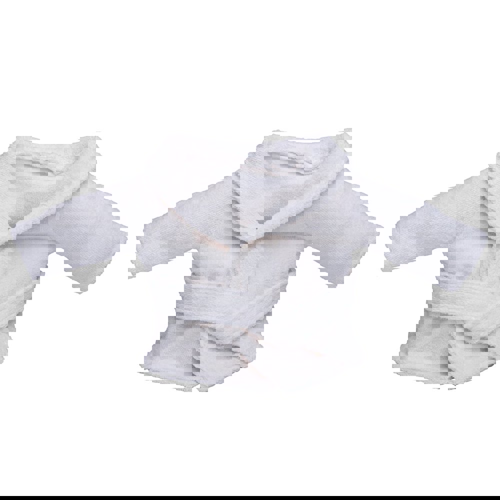 Zwischen 2 Saunagängen, nach einem heißen, erholsamen Bad oder vor einer entspannenden Massage... Mit diesem weißen Bademantel ist ein Plüschtier angezogen genug, um auf seine nächste Wellness-Behandlung zu warten oder um einfach nur total tiefenentspannt herumzusitzen.