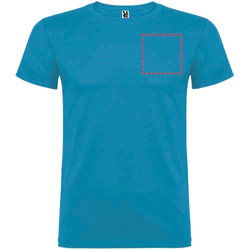 Kurzärmeliges T-Shirt mit doppellagigem Rundhalsausschnitt aus Elasthan, hergestellt aus schlauchförmigem Material für Erwachsene. Verstärkte und verdeckte Nähte am Kragen. Herausnehmbares Etikett. Das Modell ist 190 cm groß und trägt Größe L.