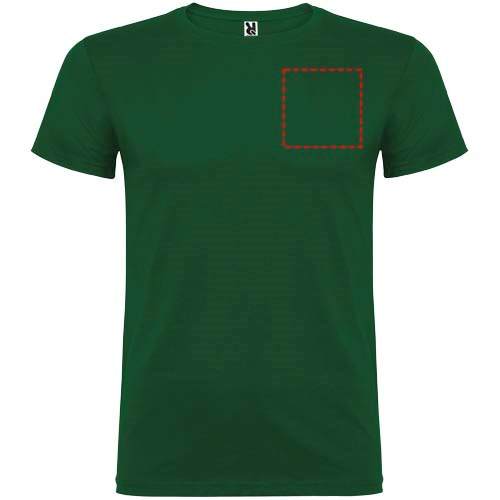 Kurzärmeliges T-Shirt mit doppellagigem Rundhalsausschnitt aus Elasthan, hergestellt aus schlauchförmigem Material für Erwachsene. Verstärkte und verdeckte Nähte am Kragen. Herausnehmbares Etikett. Das Modell ist 190 cm groß und trägt Größe L.
