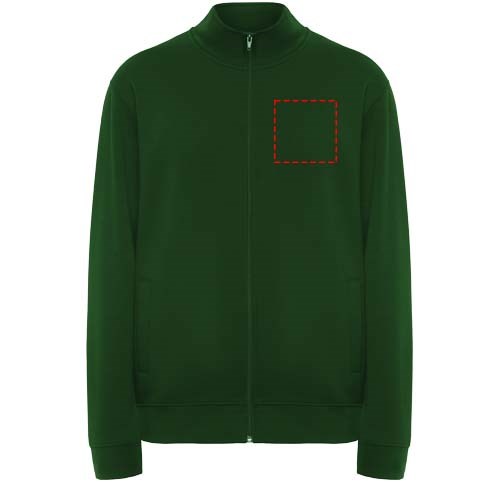 Pullover mit Stehkragen und passendem Reißverschluss. Passender Innenkragen mit verstärkten und verdeckten Nähten. Bündchen und Taille aus 1×1-Rippstrick. Herausnehmbares Etikett. Das männliche Modell ist 185 cm groß und trägt Größe L, das weibliche Modell ist 168 cm groß und trägt Größe S.