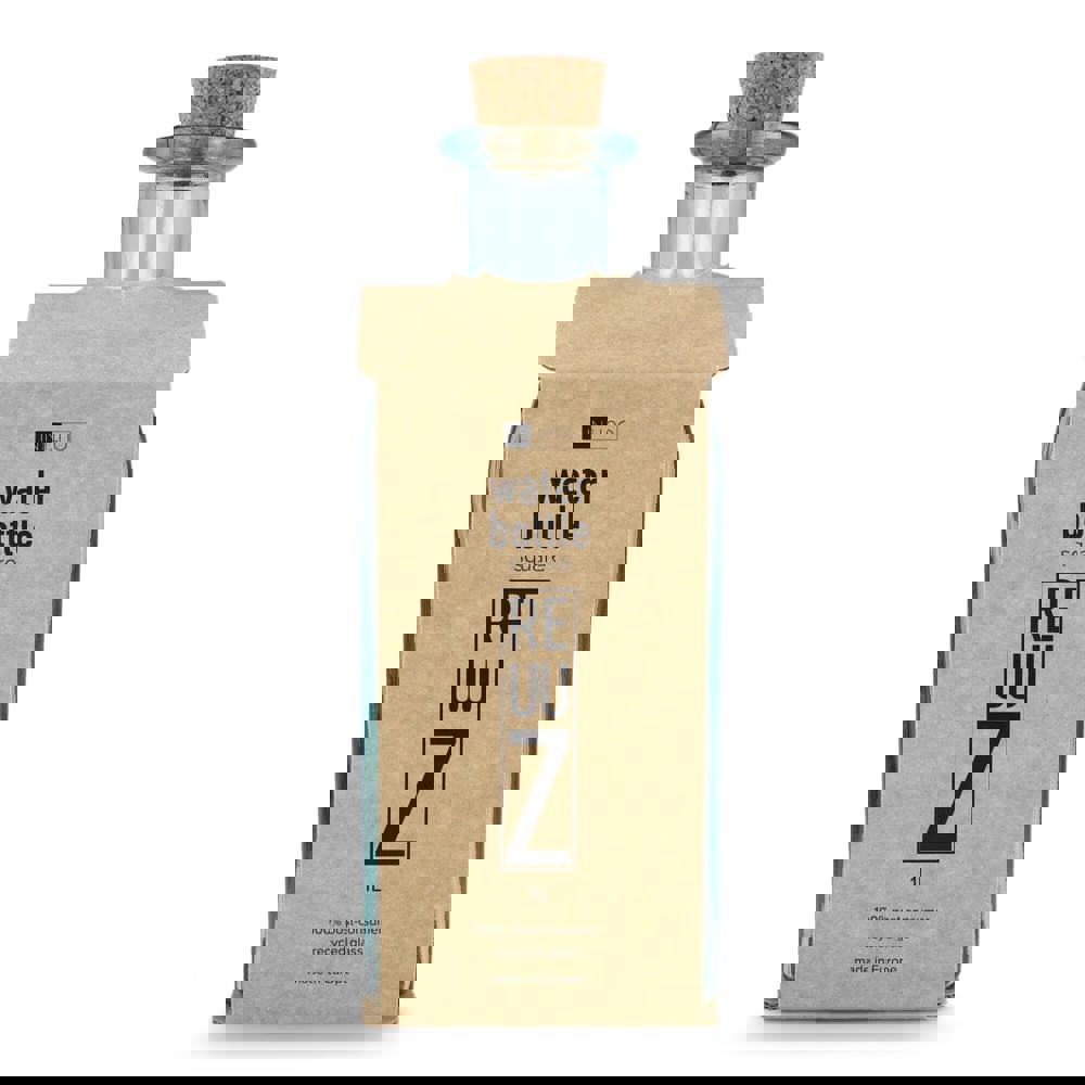 InSideOut Square Recycelte Glaswasserflasche ReuuZ mit Korkverschluss 1 l