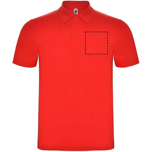 Kurzärmeliges Poloshirt mit 3-Knopfleiste und 1 × 1 geripptem Kragen. Verstärkte und verdeckte Nähte am Kragen. Herausnehmbares Etikett. Das Modell ist 190 cm groß und trägt Größe L.