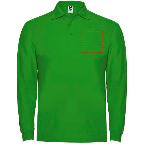 Langärmeliges Poloshirt mit geripptem Kragen und Ärmelbündchen, 3er-Knopfleiste und 1×1-Rippstrickbündchen an den Ärmeln. Verstärkte und verdeckte Nähte am Kragen. Optionale Tasche. Herausnehmbares Etikett. Das Modell ist 190 cm groß und trägt Größe L.