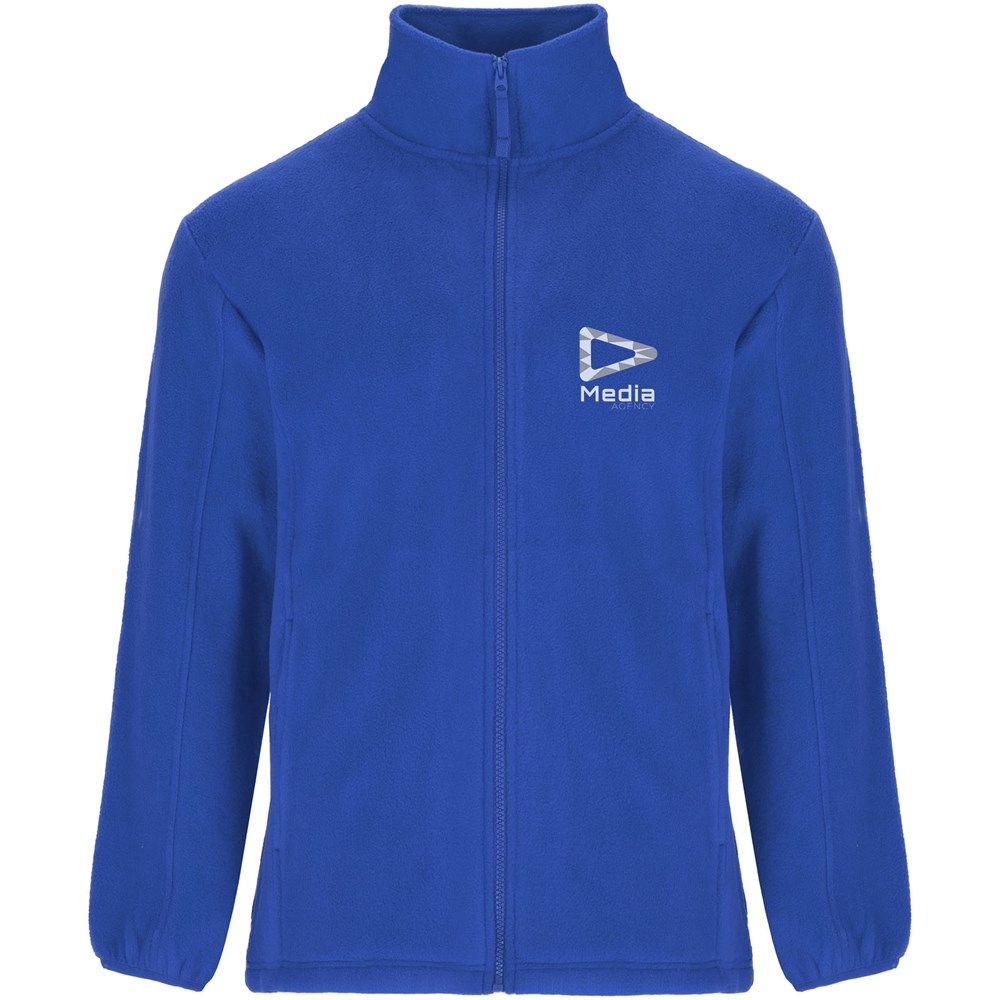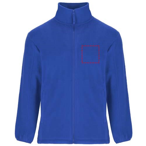 Fleecejacke mit gefüttertem Stehkragen und entsprechend verstärkten und verdeckten Nähten. Eingespritzter Reißverschluss mit passendem Zipper aus Stoff. Seitentaschen. Ärmelbündchen mit Gummizug. Unterer Saum mit seitlichem Reißverschluss. Herausnehmbares Etikett. Das Modell ist 185 cm groß und trägt Größe M.