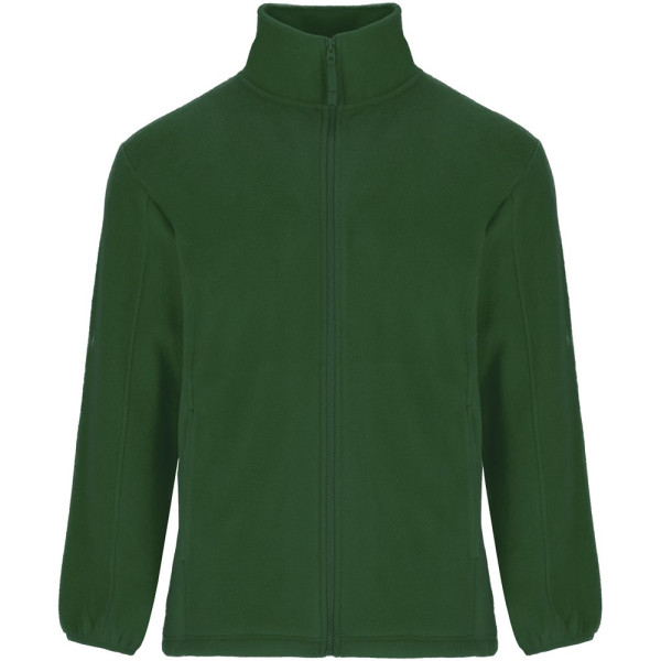 Fleecejacke mit gefüttertem Stehkragen und entsprechend verstärkten und verdeckten Nähten. Eingespritzter Reißverschluss mit passendem Zipper aus Stoff. Seitentaschen. Ärmelbündchen mit Gummizug. Unterer Saum mit seitlichem Reißverschluss. Herausnehmbares Etikett. Das Modell ist 185 cm groß und trägt Größe M.