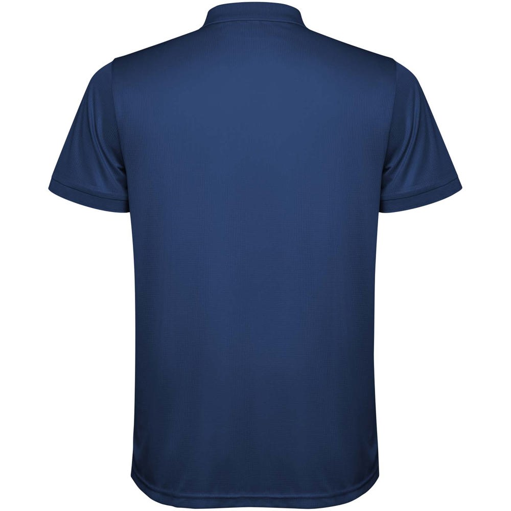 Kurzärmeliges Poloshirt für Herren. Verstärkte und verdeckte Nähte am Innenkragen. 1×1-Rippstrick an Bündchen und Kragen. Seitennähte. Knopfleiste mit 3 Knöpfen und Seitenschlitze.