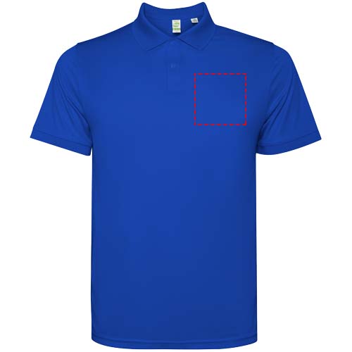 Kurzärmeliges Poloshirt für Herren. Verstärkte und verdeckte Nähte am Innenkragen. 1×1-Rippstrick an Bündchen und Kragen. Seitennähte. Knopfleiste mit 3 Knöpfen und Seitenschlitze.