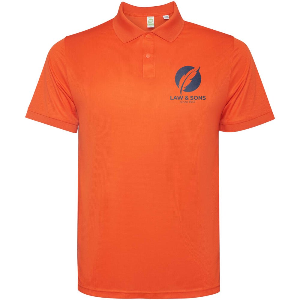 Kurzärmeliges Poloshirt für Herren. Verstärkte und verdeckte Nähte am Innenkragen. 1×1-Rippstrick an Bündchen und Kragen. Seitennähte. Knopfleiste mit 3 Knöpfen und Seitenschlitze.