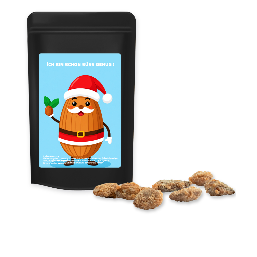Feuergebrannte Mandeln ohne Zuckerzusatz, ca. 30g, Standbeutel Mini schwarz