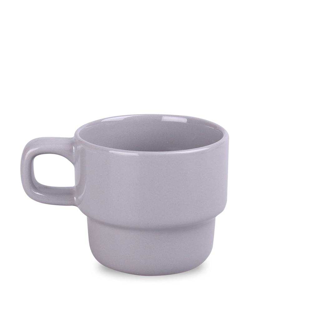 Interessante stapelbare Tasse im skandinavischen Stil. Erhältlich in mehreren trendigen Farbvarianten. Sie zeichnet sich durch ihre charakteristische Henkelform aus.