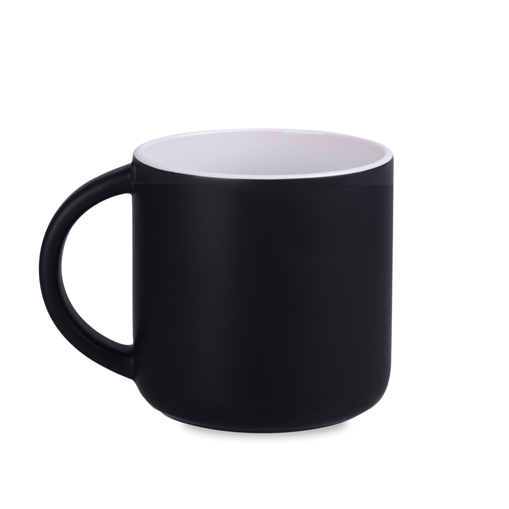 Einer unserer Bestseller mit modernem Design und einer schwarzen, matten Oberfläche mit satiniertem Griff. Bietet eine große Fläche für Verzierungen. Erhältlich in mehreren Farbvarianten des Innenraums.