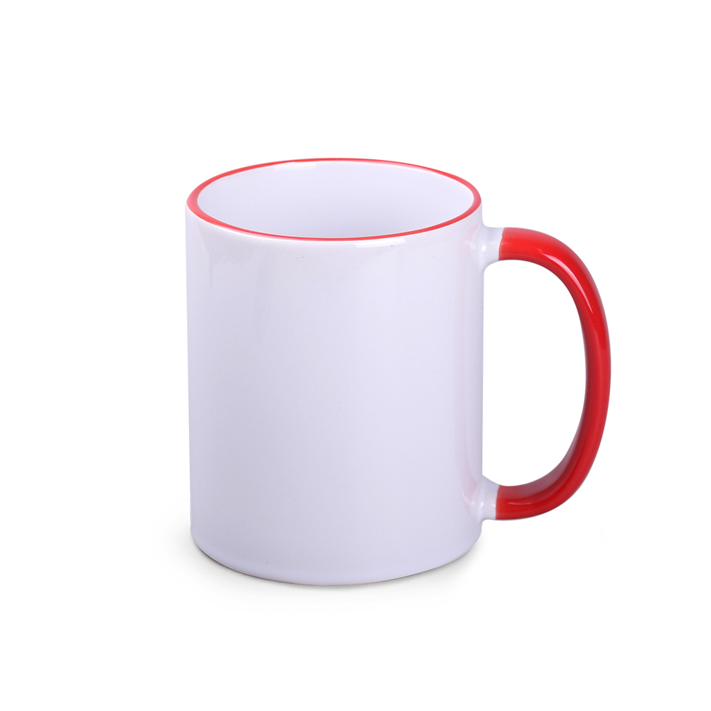 Ein außergewöhnlich farbenfroher Sublimationsbecher mit einer einfachen Form. Perfekt für das Aufbringen von Drucken in Fotoqualität. Das Besondere daran sind die in vielen Farben gefärbten Felgen und Ohren.