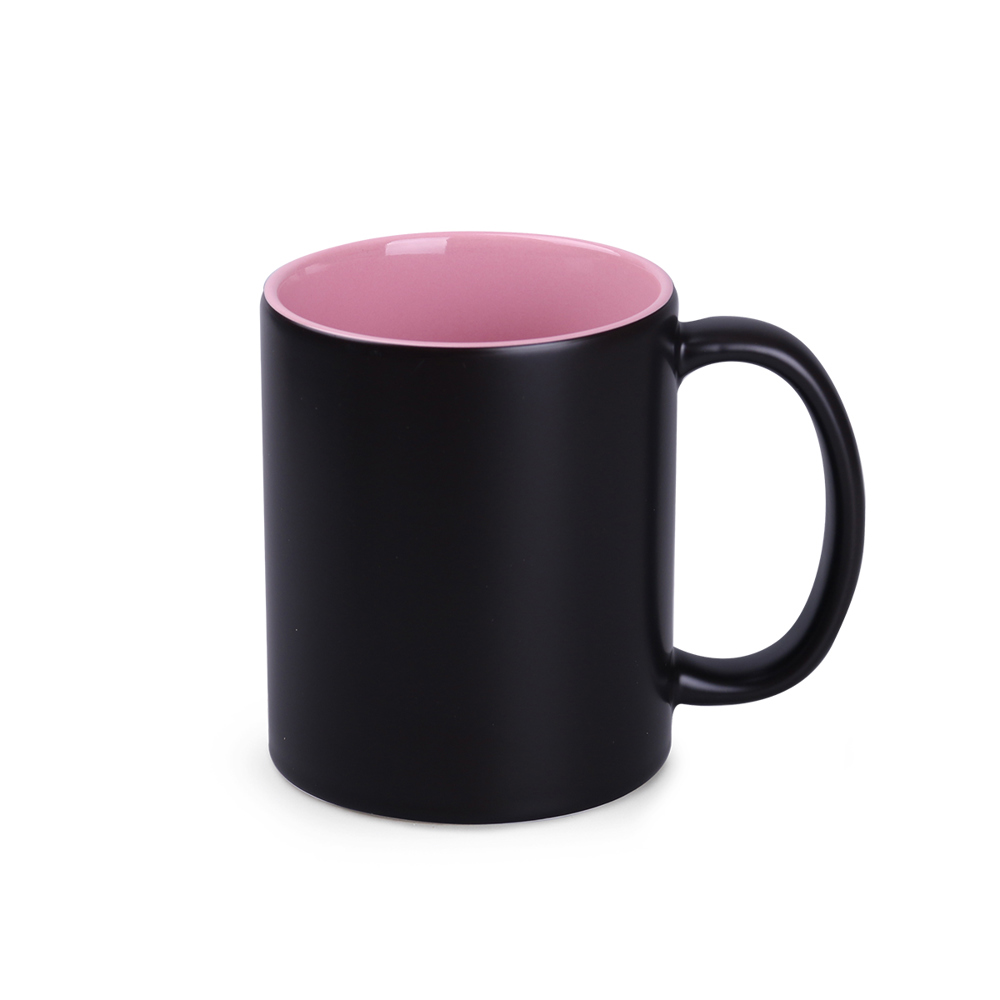 Klassische zylindrische Form mit satinierter schwarzer Oberfläche. Ein bekanntes Bechermodell, auf dem unter dem Einfluss von heißer Flüssigkeit ein Druck in Fotoqualität entsteht. Das Innenleben ist in modischen Farben erhältlich. Die matte Außenfläche "versteckt" den Aufdruck noch besser, wenn der Becher kalt ist.