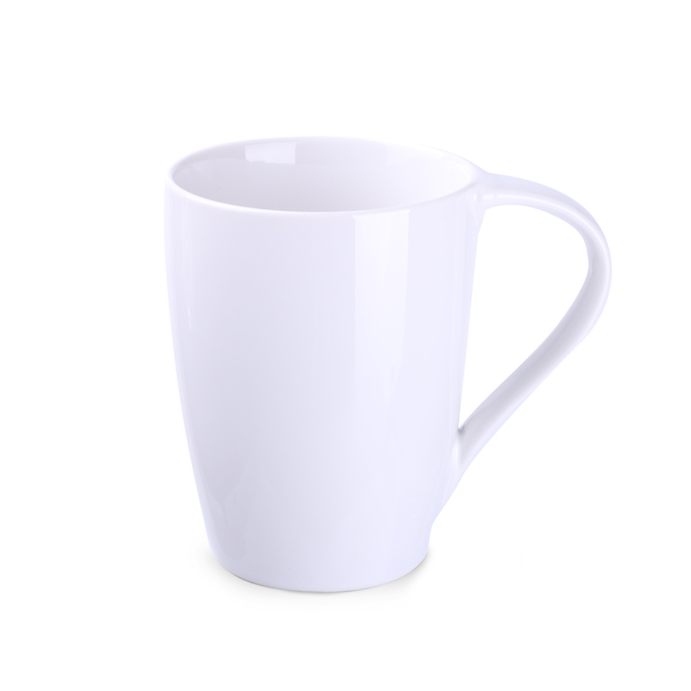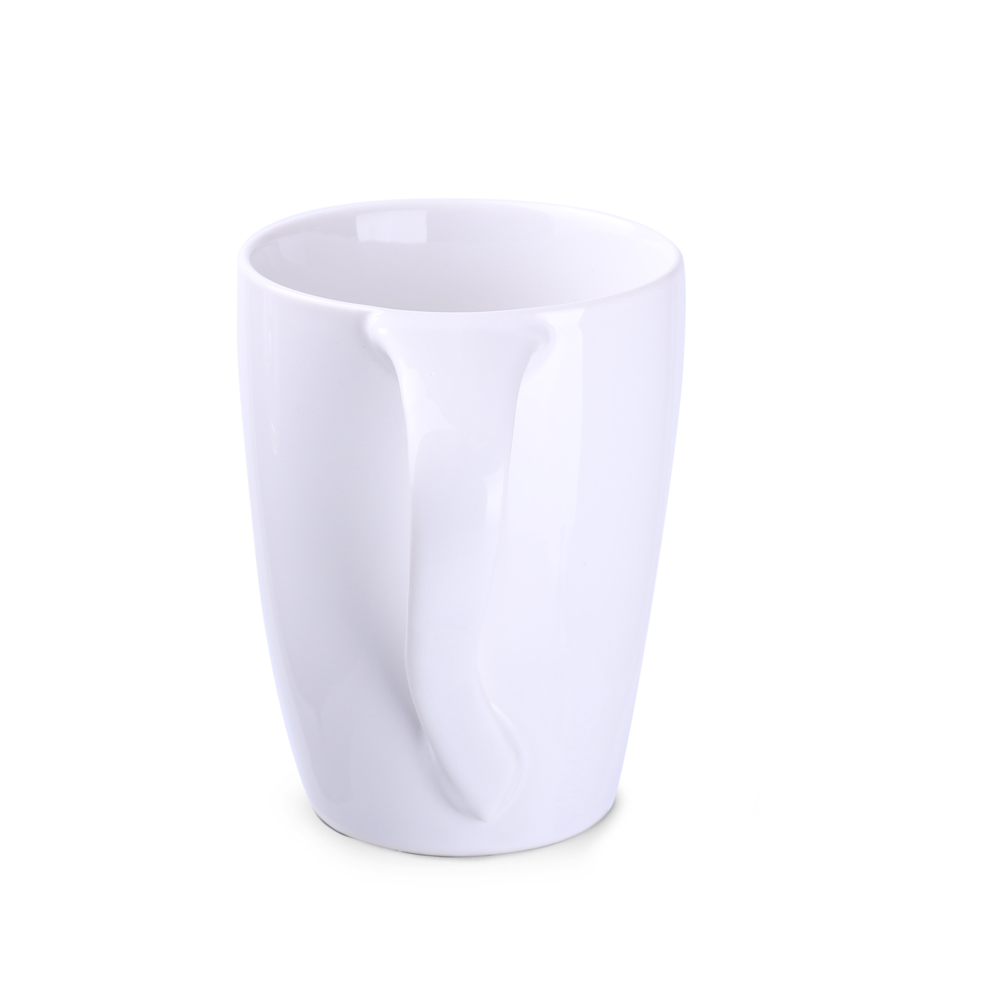Ein meistverkauftes Modell aus weißem, hochwertigem Porzellan. Dank des originellen wellenförmigen Henkels wird es die Aufmerksamkeit auf die beworbene Marke lenken.