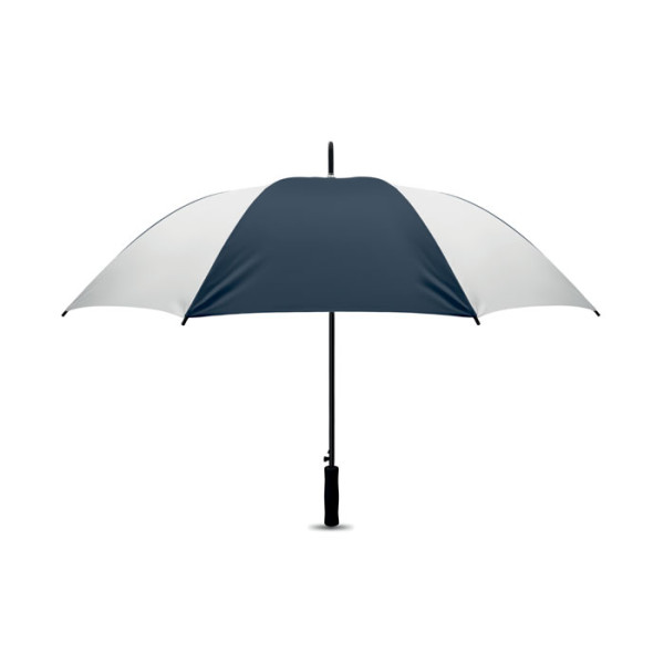 27'' Regenschirm aus 190T Pongee. Stock und Schienen aus schwarz überzogenem Metall, Spitzen aus schwarzem Kunststoff. Schwarzer EVA Griff. Automatische Öffnung, manuelle Schließung.