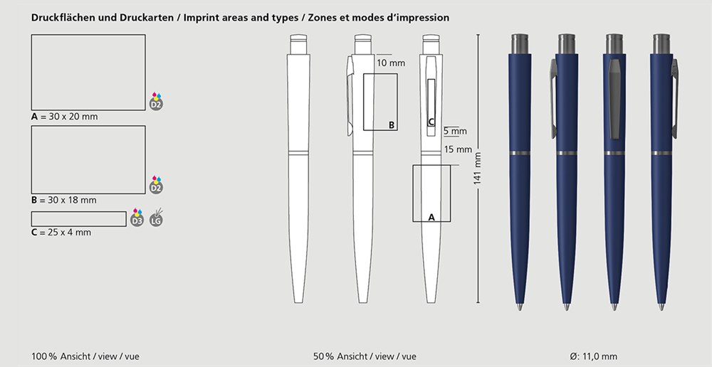 Der Snooker softtouch Ms ist ein Druckkugelschreiber. Materialien und Oberflächen: Schaft: Aluminium, gummierte Softtouch-Oberfläche. Ring und Drücker: Messing mattverchromt. Oberteil: Aluminium, gummierte Softtouch-Oberfläche. Klipp: Stahl mattverchromt. Standardfarben: Kugelschreiber: in 5 Farben erhältlich. Sonderfarben: ab 10.000 Stück, ab 25.000 Stück ohne PMS-Zuschlag. Standardmine: Multifill P (8.000 m), blau, Mine optional: Multifill P (schwarz).
