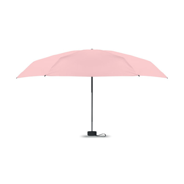19'' Windproof Regenschirm aus 190T Pongee. 5-fach faltbar. Gestell aus Metall und Fiberglas. Schwarz gummierter Griff und Handschlaufe. Inkl. passende Schirmhülle. Manuelle Öffnung und Schließung.