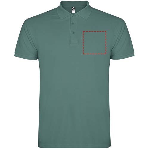 Kurzärmeliges Poloshirt für Herren. Verstärkte und verdeckte Nähte am Innenkragen. 1x1 Rippstrickbündchen an Ärmeln und Kragen. Seitennähte. 3-Knopfleiste und Seitenschlitze. Optionale Tasche. Herausnehmbares Etikett. Das Modell ist 185 cm groß und trägt Größe L.