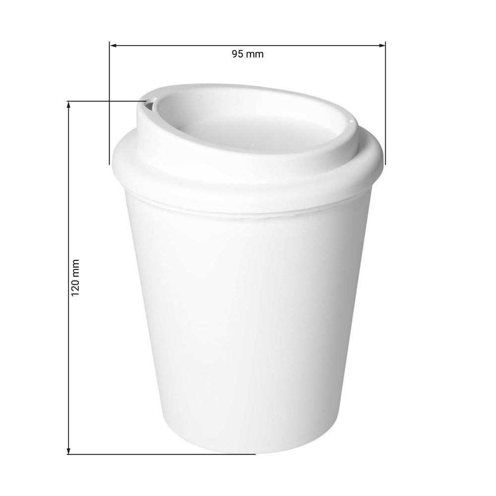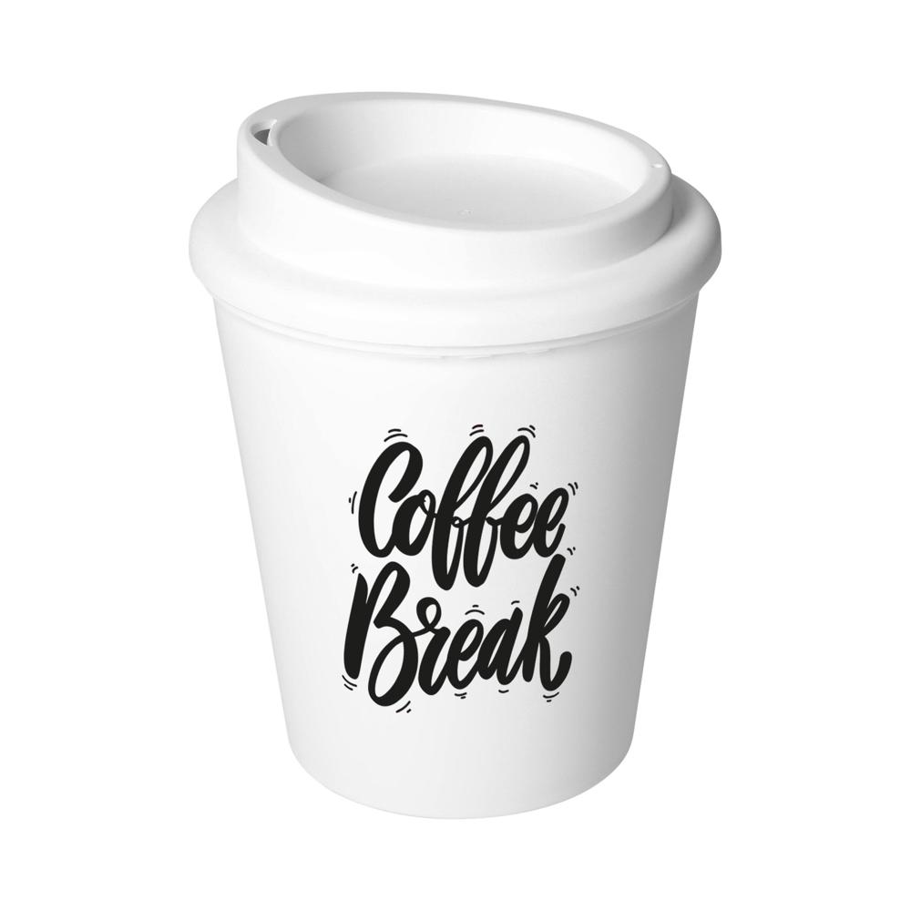 Für den kleinen Kaffee unterwegs. Praktischer To-Go-Becher aus doppelwandigem Kunststoff inkl. Deckel mit Trinköffnung. Der Deckel wird verschraubt und hält somit besonders gut auf dem Becher. Passt auch in die gängigen Getränkehalter in PKW. Füllmenge: 0,25 Liter