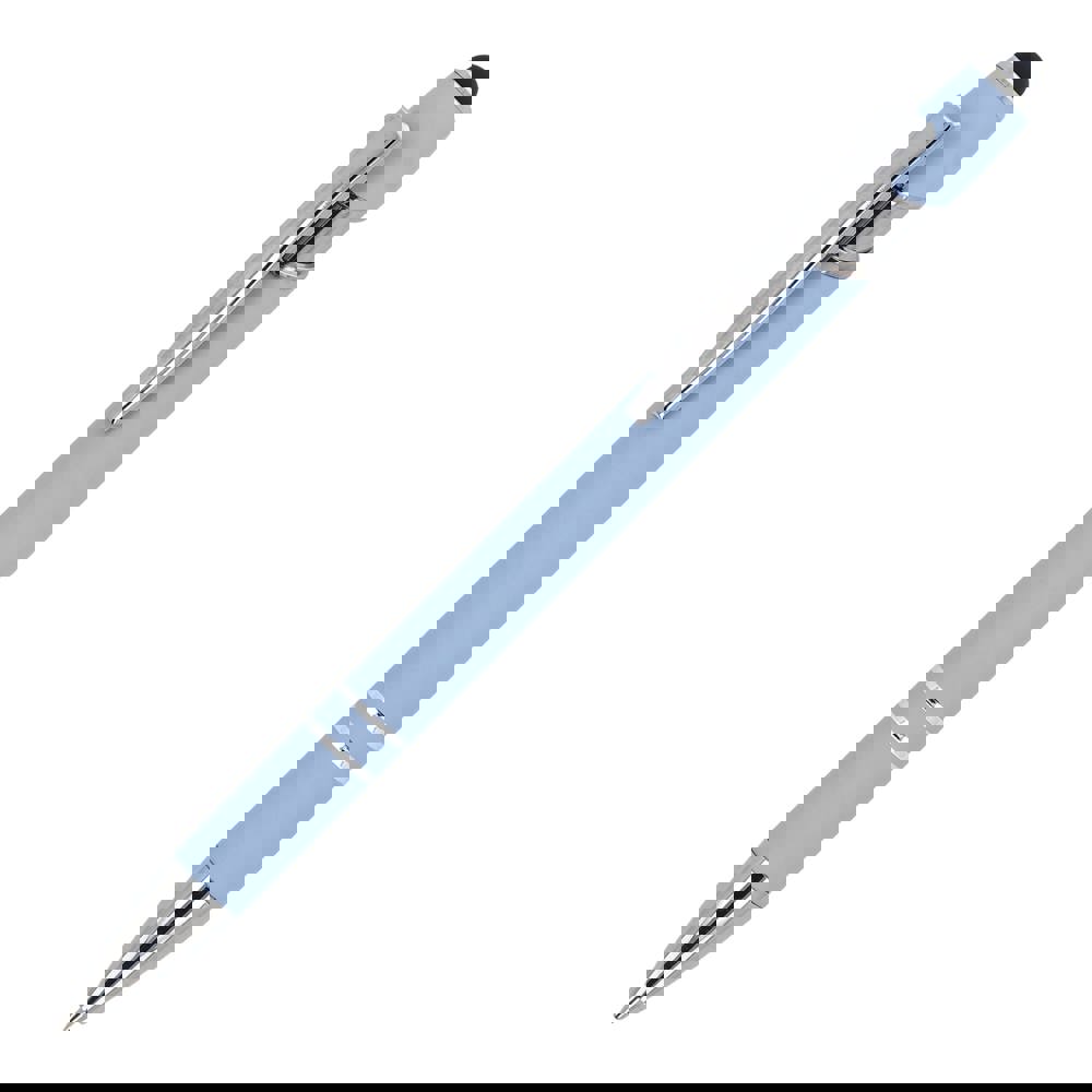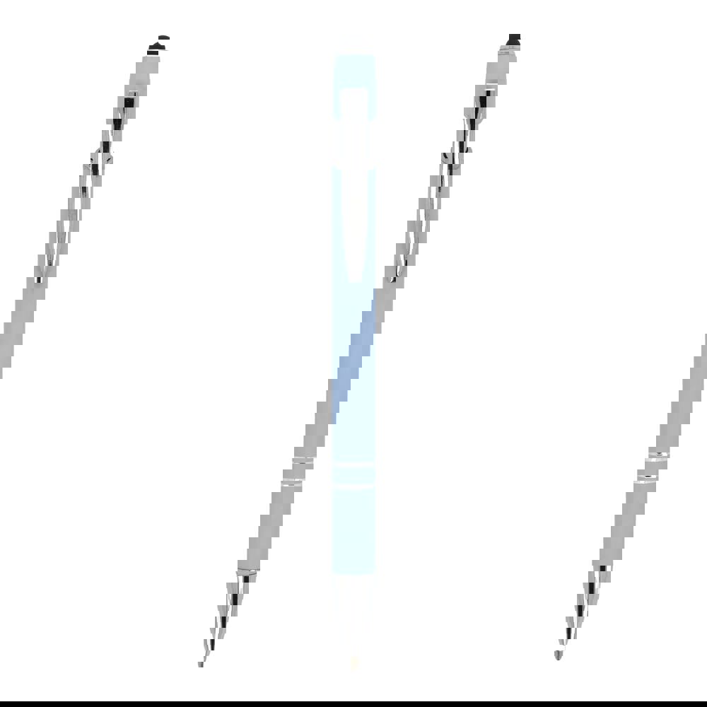 Kugelschreiber aus Aluminium mit elegantem Soft-Touch-Finish und Stylus. Mit massivem Metallclip. Schreibfarbe: blau.