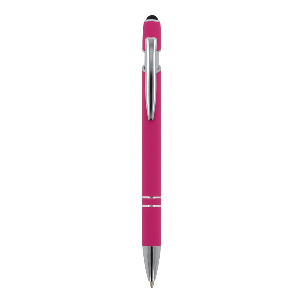 Kugelschreiber aus Aluminium mit elegantem Soft-Touch-Finish und Stylus. Mit massivem Metallclip. Schreibfarbe: blau.