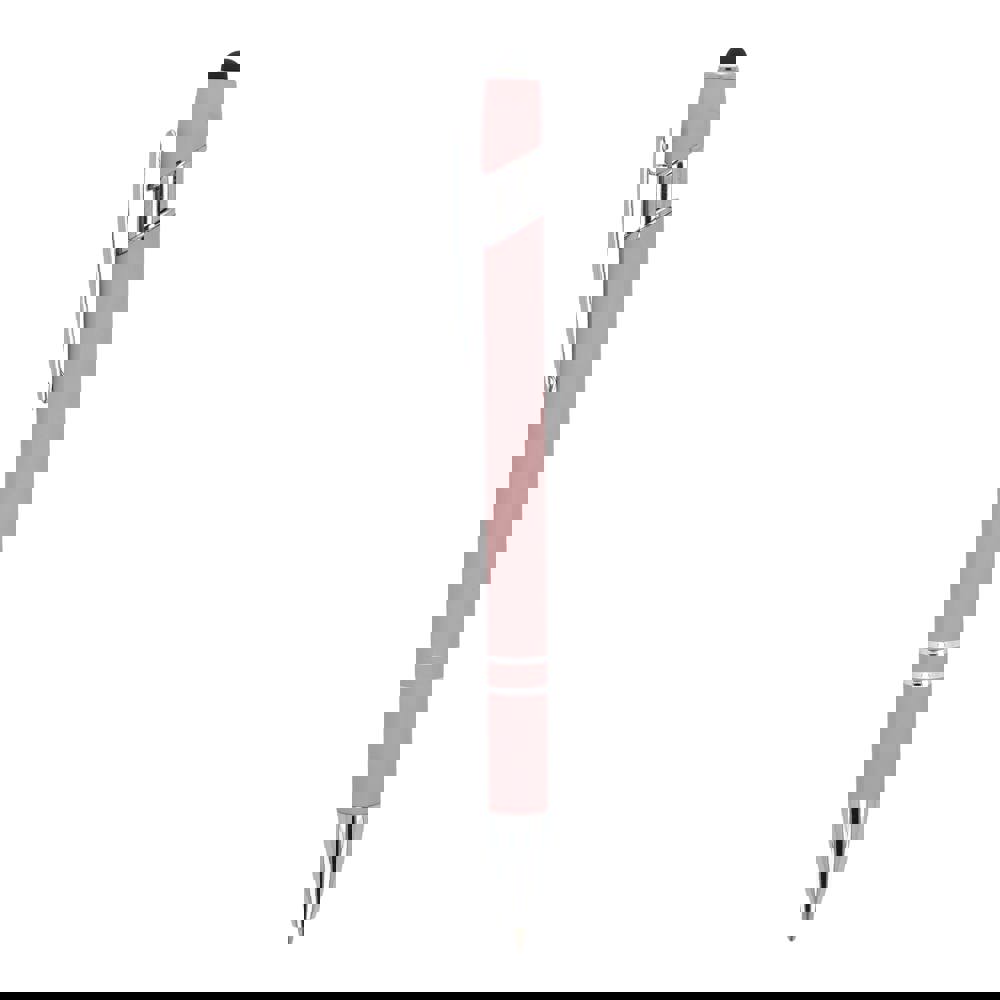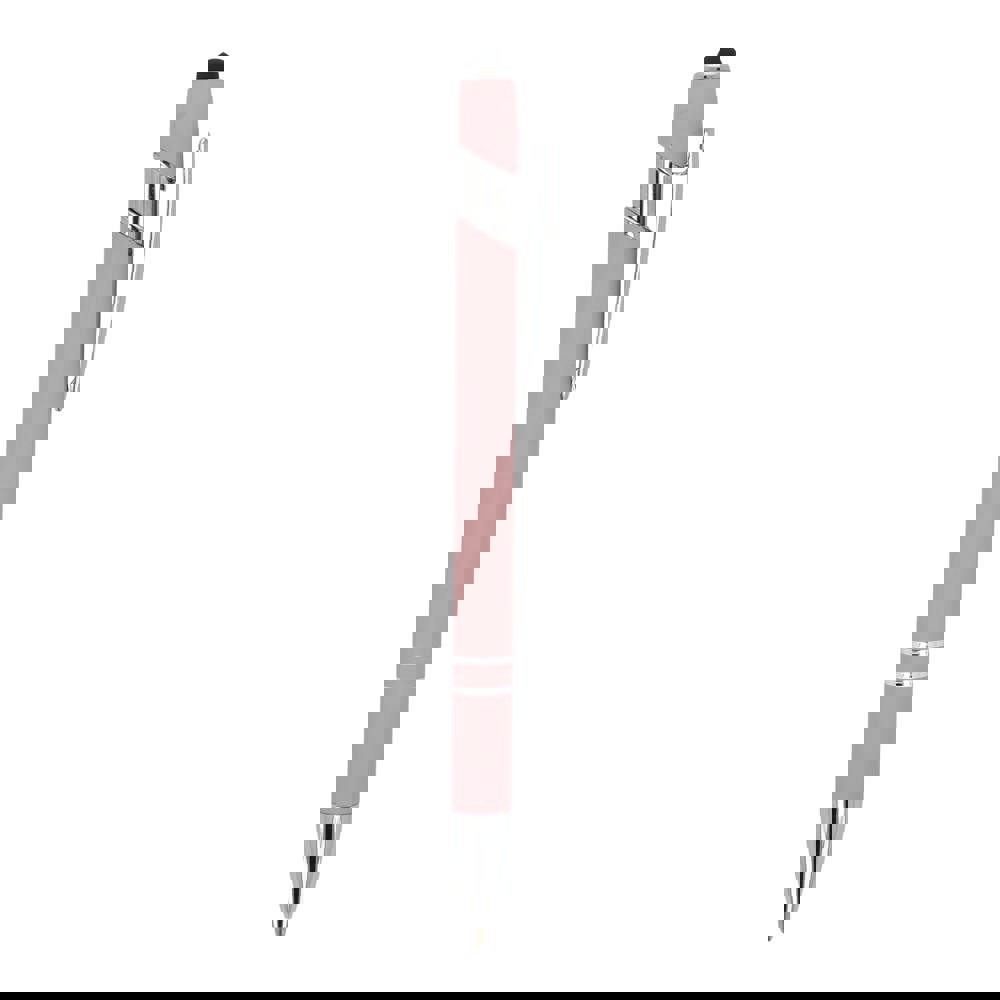 Kugelschreiber aus Aluminium mit elegantem Soft-Touch-Finish und Stylus. Mit massivem Metallclip. Schreibfarbe: blau.