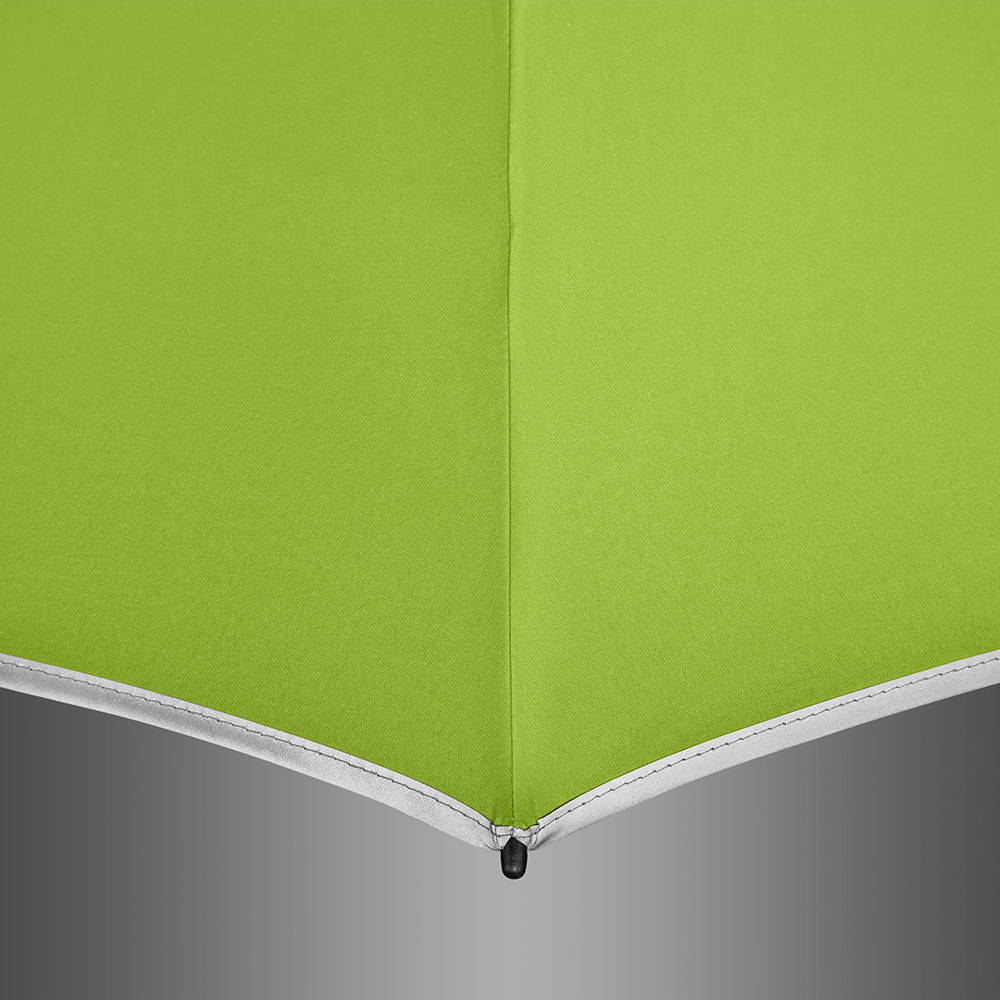 Smarter Stockschirm in mittlerer Größe mit modisch reflektierender Paspelierung Komfortable Automatik-Funktion zum schnellen Öffnen, hochwertiges Windproof-PLUS-System für eine maximale Gestell-Flexibilität bei stärkeren Windböen, flexible Fiberglasschienen, stabiler Stahlstock schwarz galvanisiert, Bezug mit modischer Reflexpaspel in Silber, Polyester-Pongee Bezugsmaterial aus recycelten Kunststoffen, umweltfreundlich dank original waterSAVE® Bezugsmaterial, mit waterSAVE®-Label auf dem Schließband, Soft-Feel-Rundhakengriff mit Werbeanbringungsmöglichkeit