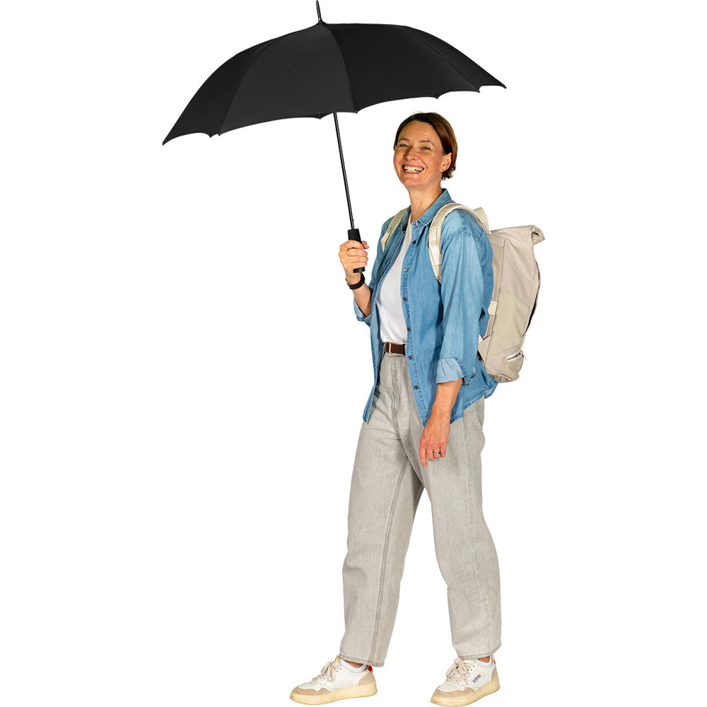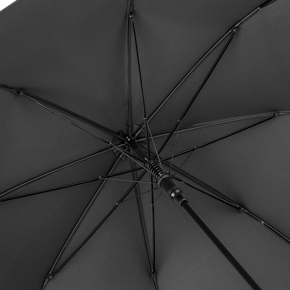Automatik-Stockschirm mit hervorragendem Preis-Leistungs-Verhältnis und Windproof-System Komfortable Automatik-Funktion zum schnellen Öffnen, hochwertiges Windproof-System für höhere Gestell-Flexibilität und bessere Windsicherheit, flexible Fiberglasschienen, höherer Korrosionsschutz durch schwarze Galvanisierung des Stahlstocks, handsympathischer Soft-Griff mit Werbeanbringungsmöglichkeit