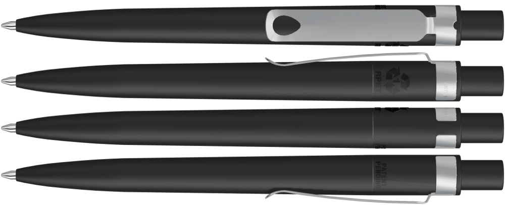 Druckkugelschreiber aus recyceltem PET-Material mit matt gedecktem Gehäuse und Metallclip matt verchromt.