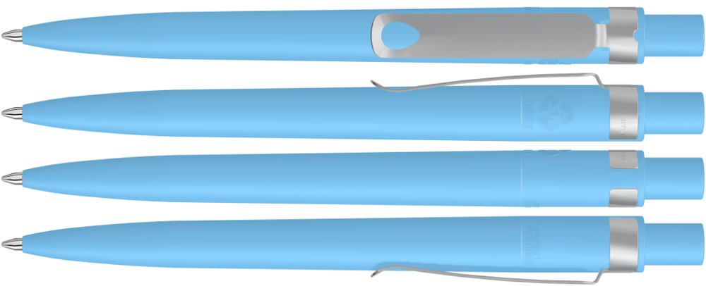 Druckkugelschreiber aus recyceltem PET-Material mit matt gedecktem Gehäuse und Metallclip matt verchromt.