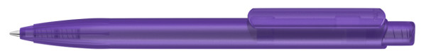 Druckkugelscheiber mit transparent gefrostetem Gehäuse, Clip und Drücker aus recyceltem ABS Kunststoff. Eingelassene Griffzone.