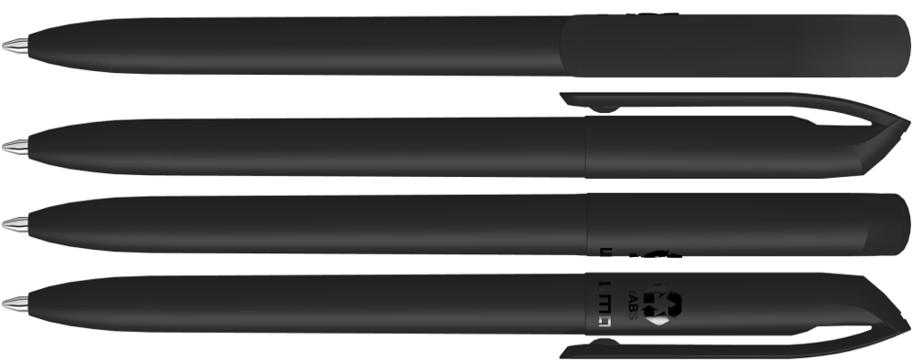 Drehkugelschreiber mit gedeckt mattem Gehäuse und Clip aus recyceltem ABS-Kunststoff.