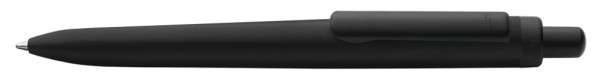 Metall-Druckkugelschreiber mit gemetrisch wechselnder Schaftform, die sich zur Schreibspitze hin in eine prägnante Dreikantgeometrie verjüngt. Aluminiumgehäuse matt lackiert, Clip und Drücker in schwarz matt.