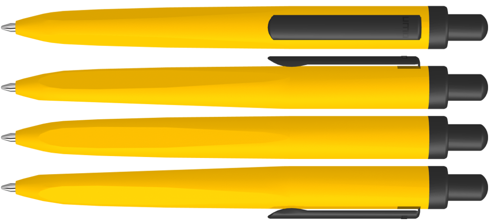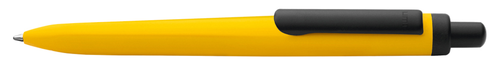 Metall-Druckkugelschreiber mit gemetrisch wechselnder Schaftform, die sich zur Schreibspitze hin in eine prägnante Dreikantgeometrie verjüngt. Aluminiumgehäuse matt lackiert, Clip und Drücker in schwarz matt.