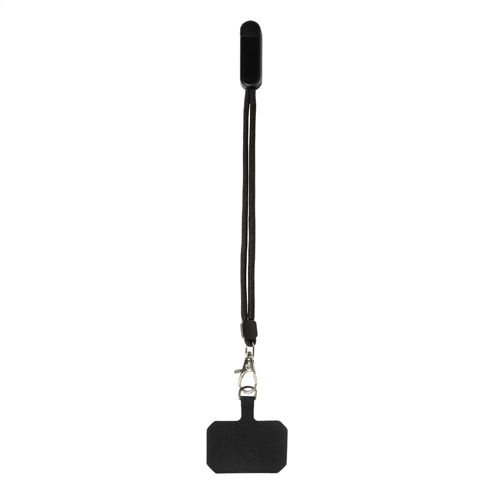 RPET-Handyhalter-Handgelenkschlaufe mit Tischhandyständer aus recyceltem ABS.