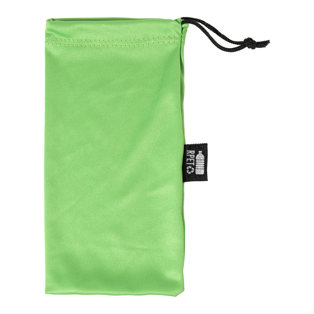 Sonnenbrillenetui aus RPET-Polyester mit Kordelzugverschluss.