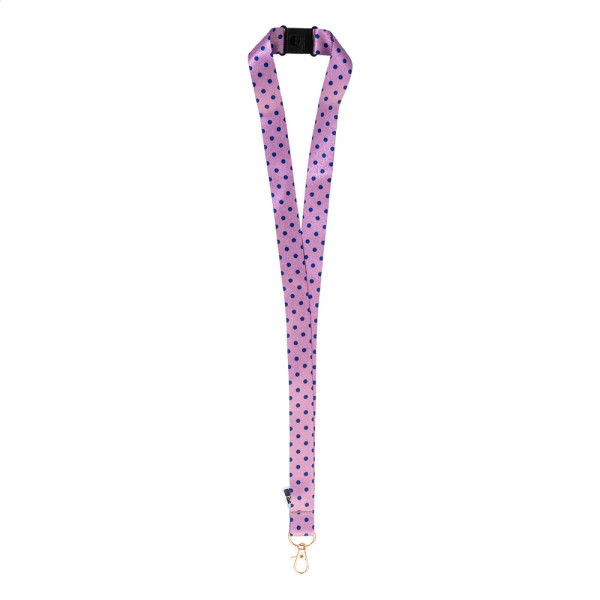 Individuelles Lanyard aus RPET mit farbigem Metallkarabiner und Panikverschluss. Der Preis ist inkl. beidseitigem Sublimationsdruck. Mindestmenge: 100 Stk.
