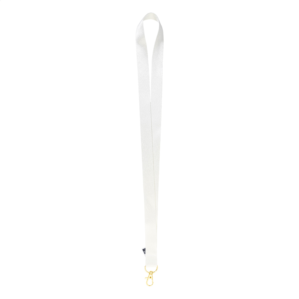 Individuelles Lanyard aus RPET mit farbigem Metallkarabiner. Der Preis ist inkl. beidseitigem Sublimationsdruck. Mindestmenge: 100 Stk.