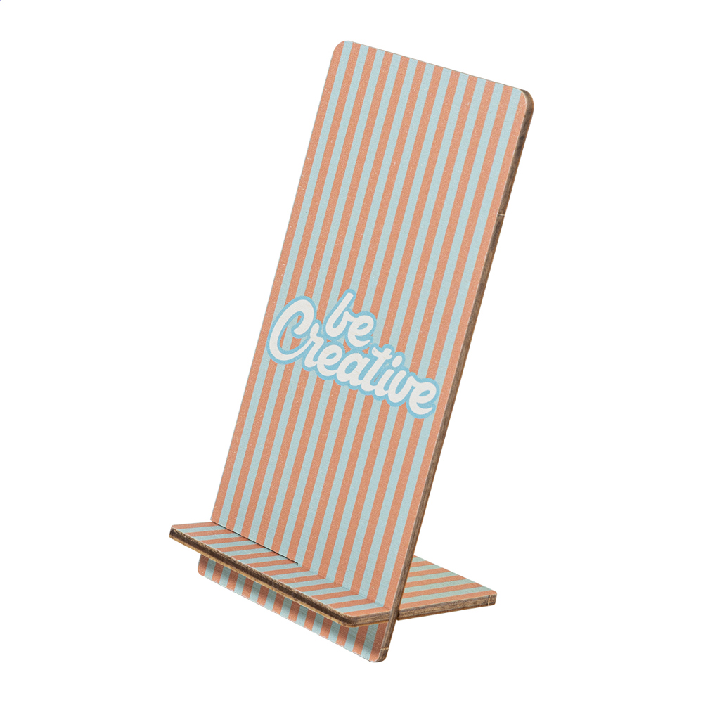 Individueller Handyhalter aus Birkenholz. Der Preis ist inkl. vollflächigem UV-LED-Druck auf der Vorderseite. Die Lieferung erfolgt flach verpackt. Mindestmenge: 50 Stk.