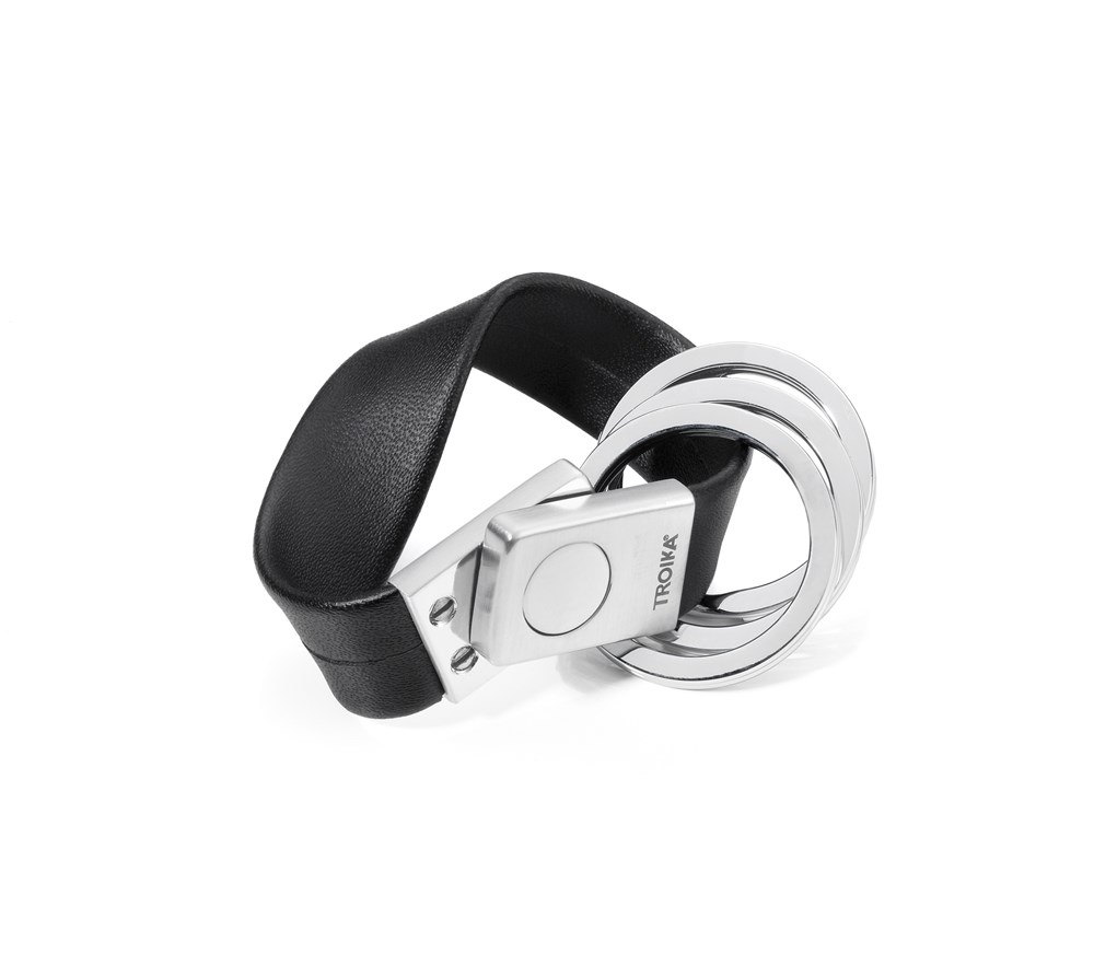 Schlüsselanhänger mit eckigem "Twist-Verschluss", Lederschlaufe, 3 Schlüsselringe, Leder/Metall, schwarz