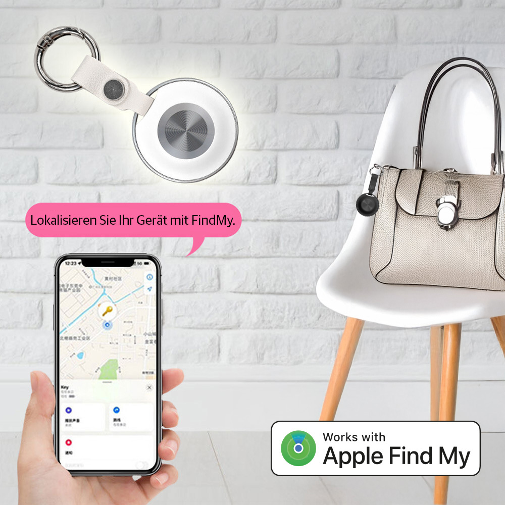Handschmeichler im Top-Design unser exklusiver One Tag Bluetooth Tracker im wasserdichten Case. Bleiben Sie flexibel egal ob iPhone oder ein Android Smartphone, unser ONE Tag Tracker inklusive elegantem Schlüsselanhänger aus Kunstleder kann beides! Mit dem ONE Tag behalten Sie mühelos den Überblick über Gegenstände, die leicht verloren gehen können. Dieser Tag wurde für Apple und Android Produkte entwickelt und lässt sich nahtlos in die „Find My “-Funktion integrieren. Über die Find My iPhone-App auf Ihrem Smartphone können Sie Ihren DualTag ganz einfach verfolgen. Sie können ihn an Ihrem Schlüsselbund, Ihrer Tasche oder Ihrem Koffer anbringen. Der DualTag ist in Schwarz und weiss erhältlich und bietet die Möglichkeit, Ihr Logo zentral auf dem Gerät zu platzieren. Er ist wasserdicht nach IP65 und wird mit einer CR2032-Batterie geliefert die ca. 10-12 Monate hält. Verpackt im Einzelkarton mit Schlüsselanhänger.