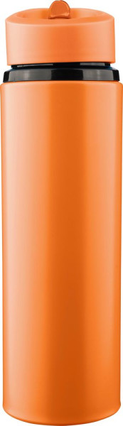 Trinkflasche aus recyceltem Edelstahl (500 ml), einwandig und aus Edelstahl 304 gefertigt. Mit PP-Schraubdeckel mit Trageschlaufe, faltbarem Ausgießer und integriertem Strohhalm. Nur für kalte Getränke geeignet. Inklusive eingraviertem Recycling-Logo. Einzeln verpackt im braunen Karton.